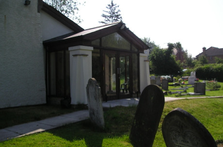 Replacement of existing storm porch and external wc with side addition providing a welcoming area, toilets and meeting room with kitchen.